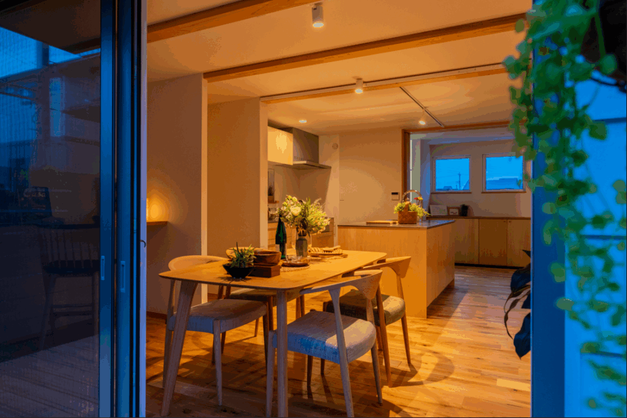 無垢フローリングの温もり、光と風を感じる開放感のあるリビングなど、